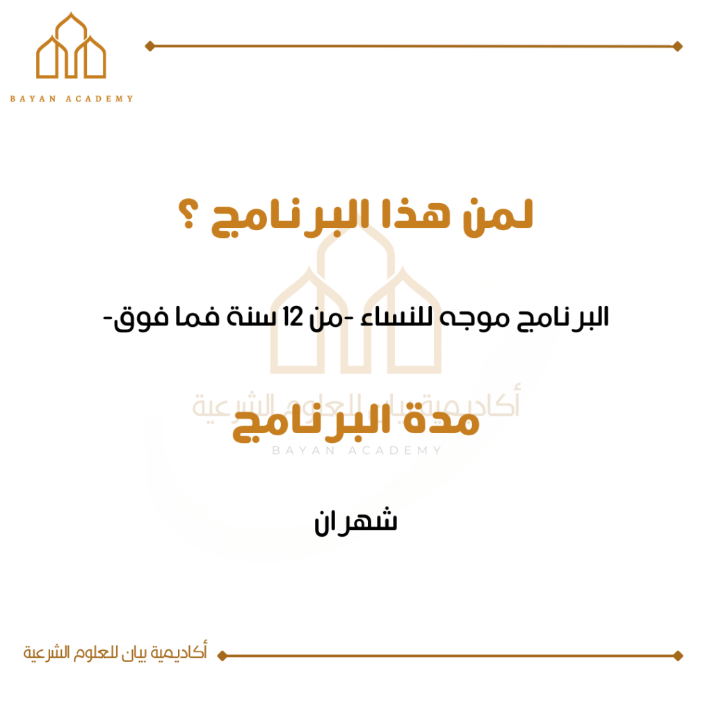 "أكادمية بيان للعلوم الشرعية هي أكاديمية إلكترونية تسعى لرضى الله سبحانه و خدمة الإسلام عامة و المسلمات خاصة من خلال تبسيط العلوم الشرعية و مشاركتها معهن لإفادتهن. في منصتنا، نسعى جاهدين لتوفير تجربة تعليمية ممتازة وشاملة للطلاب من جميع الأعمار والمستويات. نتميز بتوفير محتوى تعليمي متنوع، يشمل تلاوة وتجويد القرآن الكريم، وفهم وتفسير الآيات والسور، ودروس في تاريخ وعلوم القرآن، بالإضافة إلى تطبيقات القرآن في الحياة اليومية. نحن نؤمن بأهمية التعلم التفاعلي، ولذلك نقدم فيديوهات عالية الجودة ومواد تعليمية إضافية لمساعدة الطلاب في فهم الدروس بشكل أفضل. تهدف منصتنا أيضًا إلى تخصيص تجربة التعلم لتلبية احتياجات كل طالب وتتبع تقدمهم لقياس تحسنهم. نحن نعتبر سهولة الوصول إلى التعلم وجعله متاحًا للجميع أمرًا بالغ الأهمية . انضم إلينا الآن واستمتع بتجربة فريدة وشيقة في تعلم القرآن الكريم عبر الإنترنت"